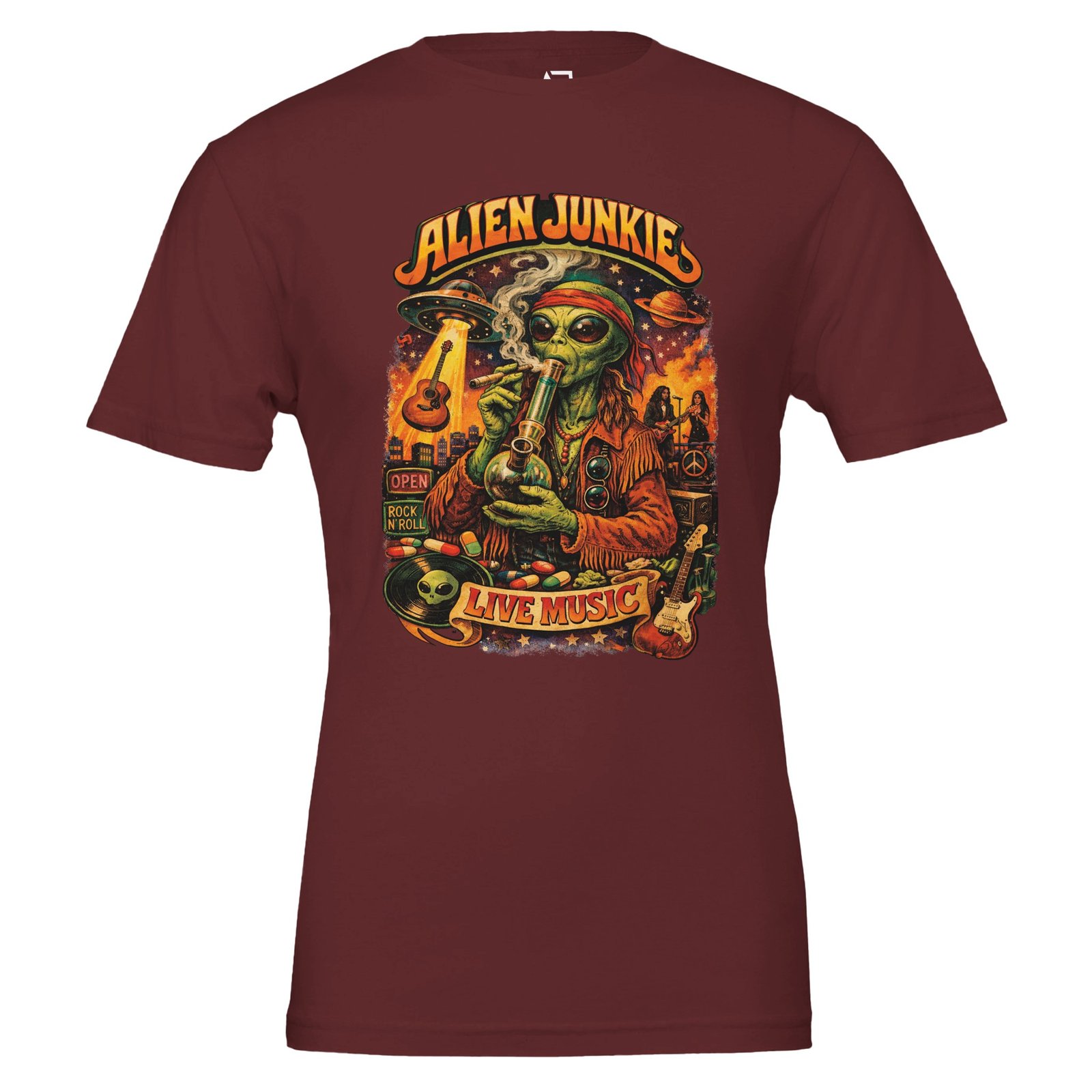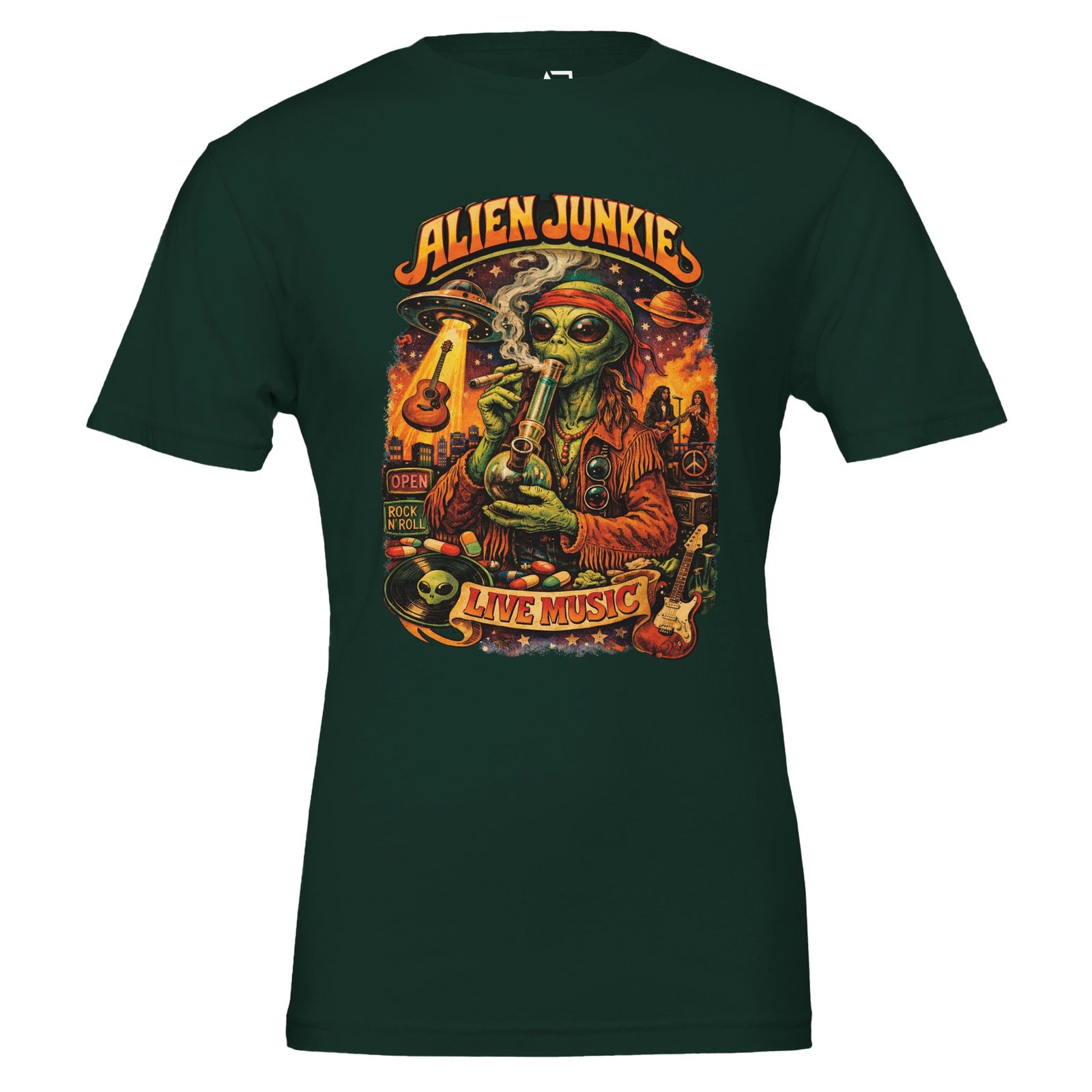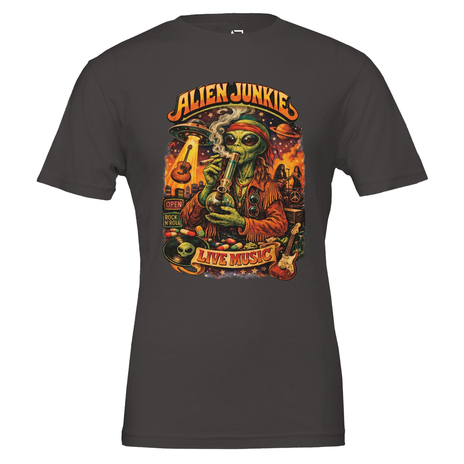 Donโt miss out on expressing your love for music and style โ grab your Alien Junkie Music T-Shirt today!